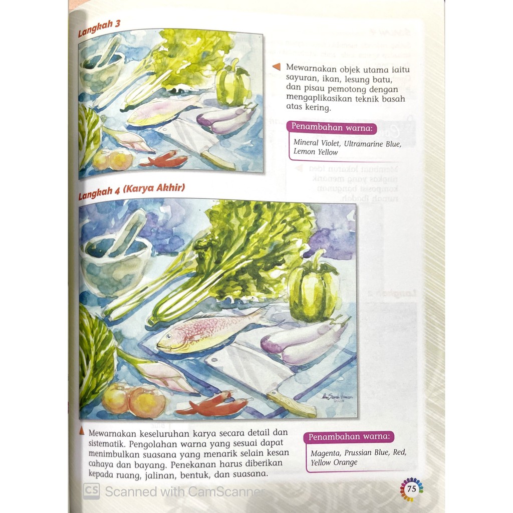 Contoh catan yang meggunakan teknik basah atas kering. Gunakan pensel hb untuk membuat lakaran pada kertas lukisan. Kesan pensel jangan terlalu tebal.2. Boleh dilukis atas bermukaan 3dimensi. Karya dalam media kering : Kaypeeoh72z dan 260 orang menganggap jawaban ini membantu. Teknik ini melibatkan sapuan warna basah ke atas permukaan kertas yang kering untuk menghasilkan kesan legap. Melukis dalam saiz yang besar.